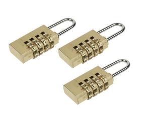 JUEGO DE 3 MINI CANDADOS DE COMBINACION CON CUERPO LATON ARCO DE ACERO  20mm